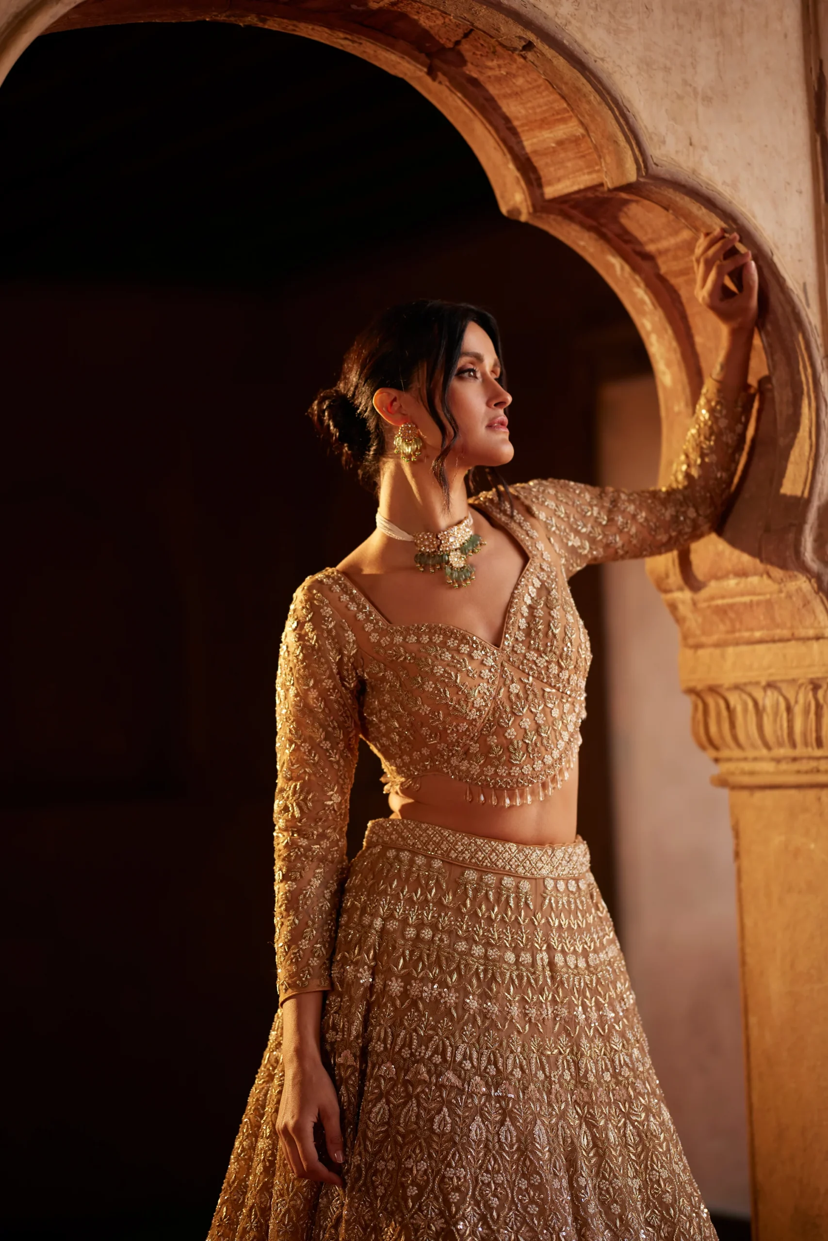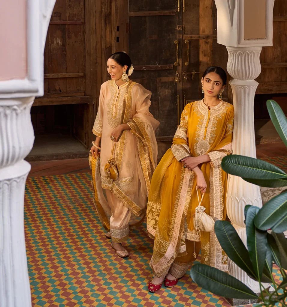 Blue Palazzo Set With Hand Embroidered Blouse And Dupatta